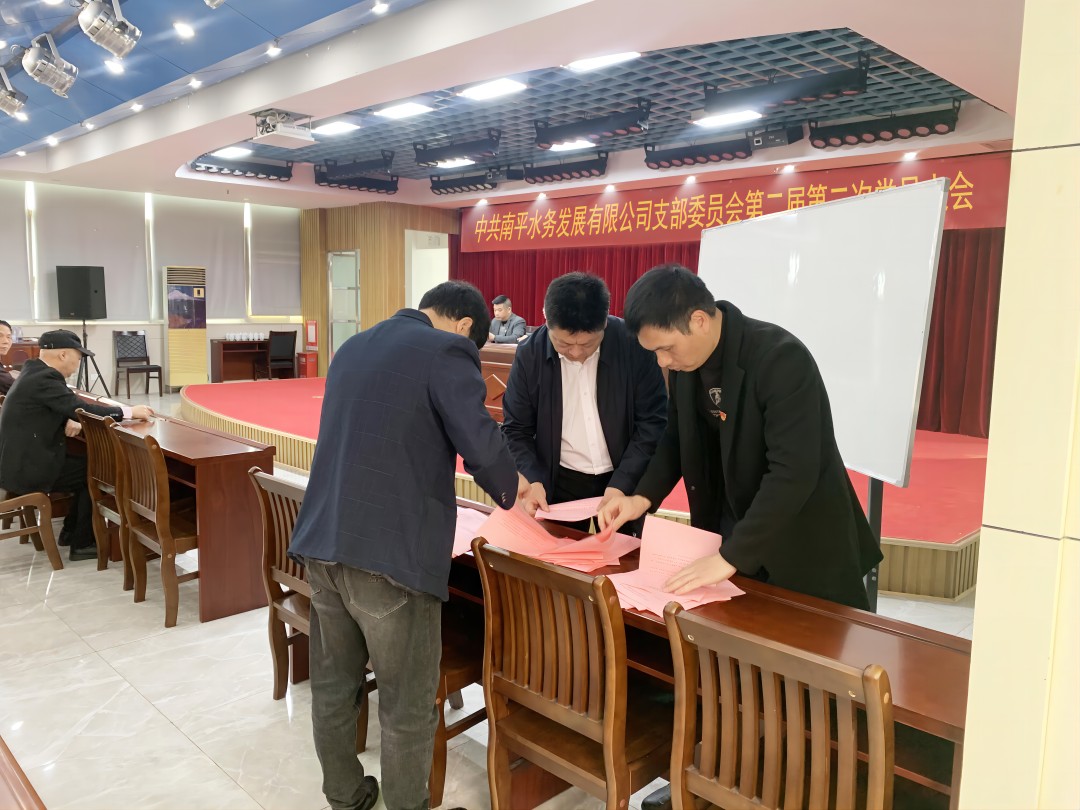 之后按照規(guī)定程序,會上逐項(xiàng)審議并表決通過了《中共南平水務(wù)發(fā)展有限公司支部委員會選舉辦法(草案)》、支部委員會委員候選人名單及監(jiān)票人、計(jì)票人建議名單。按照選舉辦法,參會的正式黨員采取無記名投票,差額選舉增補(bǔ)了支部委員會委員3名。
