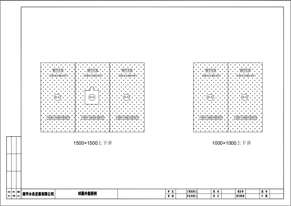 三、技術(shù)參數(shù)性能要求:球墨井蓋技術(shù)要求:1、井蓋、井面要求:需標(biāo)注南平水務(wù)字樣、給水字樣、搶修電話、規(guī)格、載重量、生產(chǎn)單位。